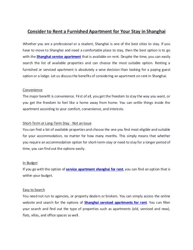Consider To Rent A Furnished Apartment For Your Stay In Shanghai